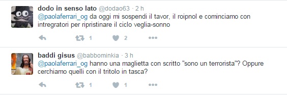 “CHI NON SALTA TERRORISTA È! È! potrebbe funzionare, grande Paola”