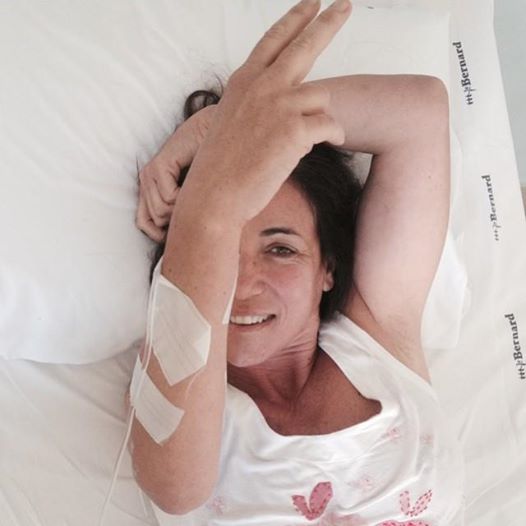 Nelle foto postate sui social network si vede la cantante sveglia dopo l’anestesia, nel letto d’ospedale, con ancora la flebo al braccio.