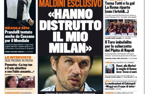 MILANO – “Hanno distrutto il mio Milan. Provo rabbia e delusione“. Comincia da questo amaro sfogo l’intervista esclusiva di Paolo Maldini alla Gazzetta dello Sport tra poche ore in edicola.