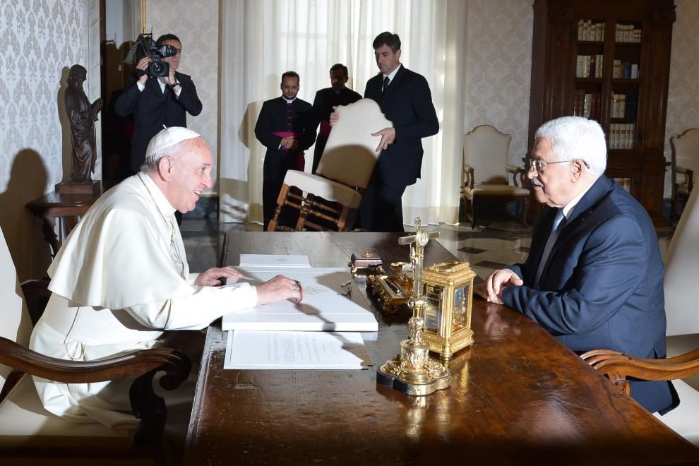Secondo quanto riportato nel Bollettino diffuso dalla sala stampa vaticana, nell’incontro tra Papa Francesco e il presidente palestinese Mahmoud Abbas,