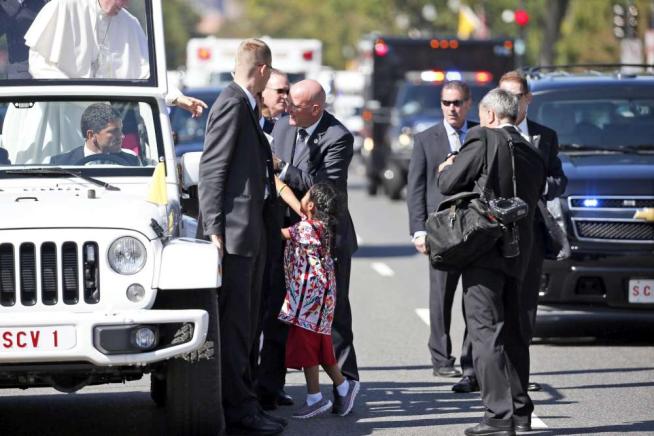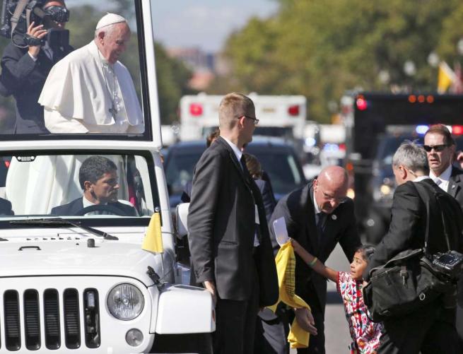 WASHINGTON – Una bimba di appena 5 anni sfida la security di Papa Francesco in visita a Washington e gli consegna una lettera. La piccola Sofi Cruz ha una richiesta per il Papa: parlare con il presidente Barack Obama per chiedergli di aiutare i suoi genitori, che sono immigrati irregolari negli Stati Uniti.