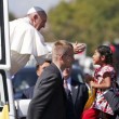 La piccola ha superato le transenne e ha attirato l’attenzione del Papa, che ha chiesto agli uomini della sicurezza: ”Lasciatela venire a me”. Così Sofi è riuscita a raccontare la sua storia al pontefice, consegnandogli una lettera che aveva preparato per spiegare che lei, figlia di immigrati irregolari messicani in California, teme ogni giorno che la sua mamma e il suo papà vengano portati via e vorrebbe che il pontefice parlasse al presidente americano, al Congresso, affinché lo status dei sui genitori venga regolarizzato. E’ la stessa Sofi a leggere poi la sua lettera ai media: