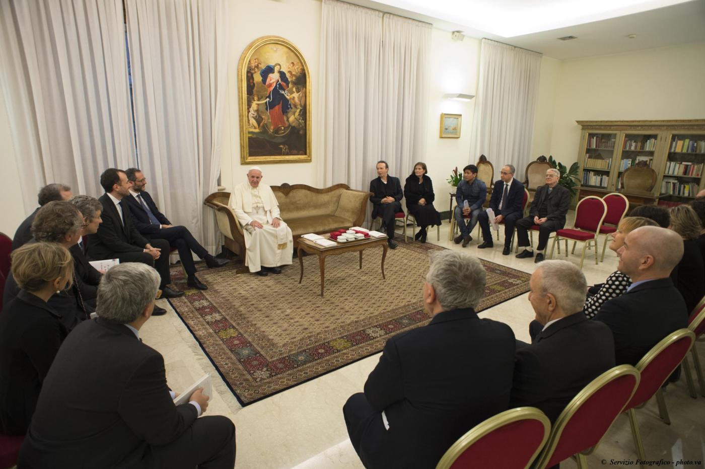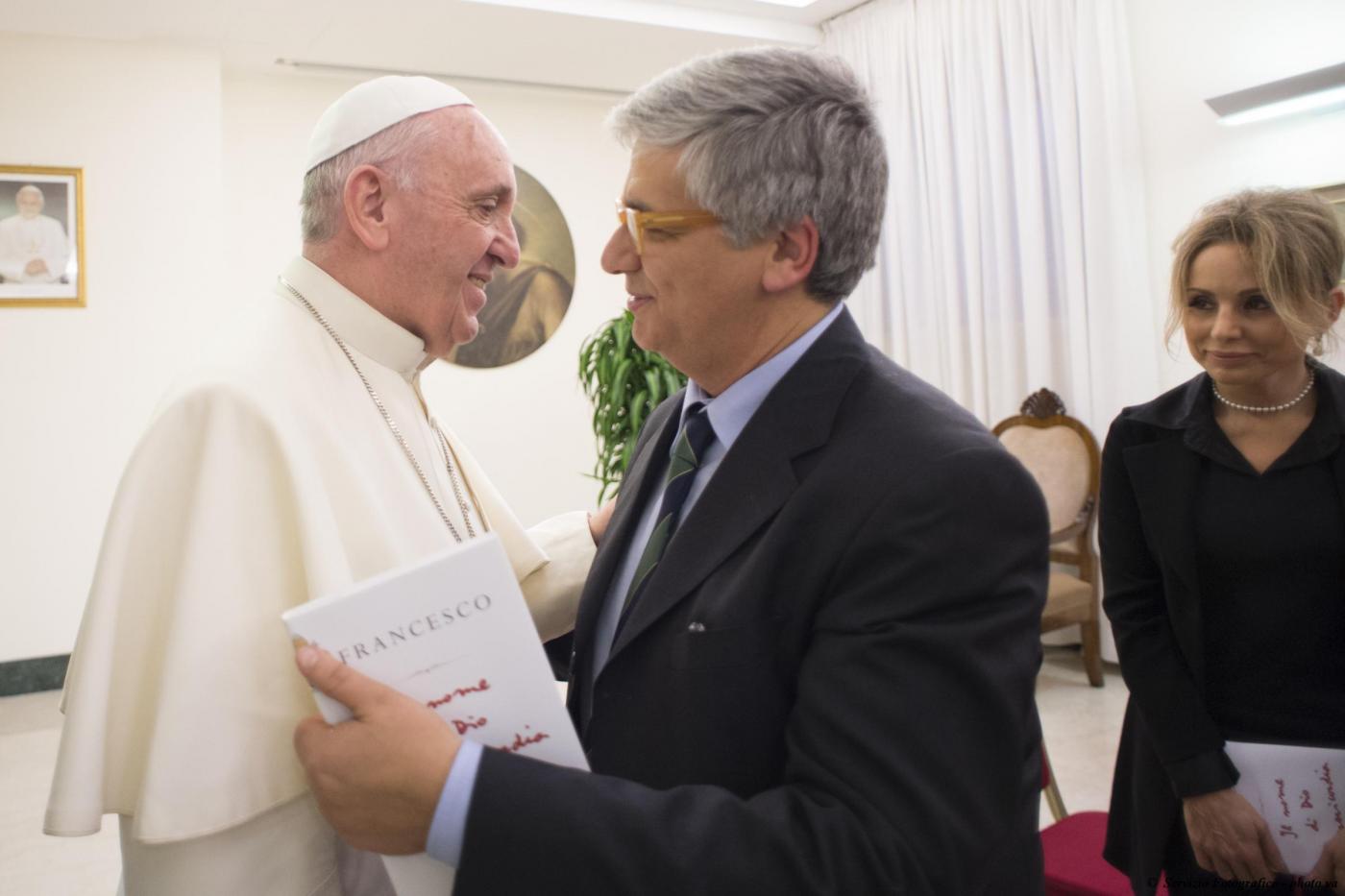 ROMA – Guarda le foto di Papa Francesco con Roberto Benigni e con Marina Berlusconi. L’occasione è la presentazione del libro di Jorge Mario Bergoglio, “Il nome di Dio è Misericordia”, edito da Piemme che fa parte della galassia Mondadori, casa editrice di cui la primogenita di Silvio Berlusconi è presidente. Anche l’agenzia Ansa nota l’evoluzione di Benigni, che da toscanaccio anti-clericale è diventato un cantore delle lodi di Papa Francesco: