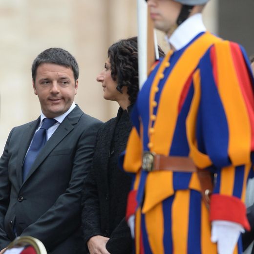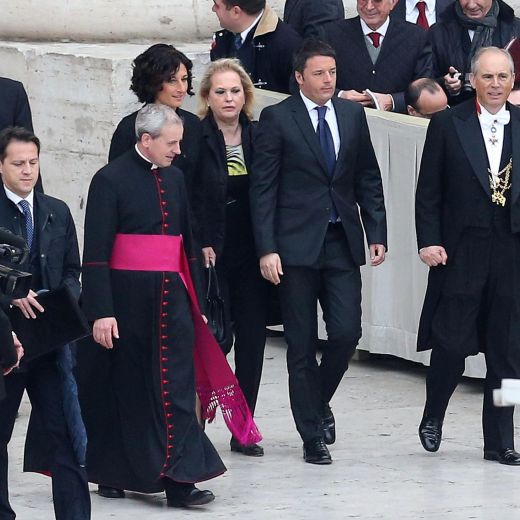 ROMA – Alla canonizzazione dei due Papi il premier Matteo Renzi si è presentato con la moglie Agnese. Lui, in un completo blu scuro con cravatta blu. Lei, invece, in total black, con un lungo cappotto nero che fa pendant con i capelli.