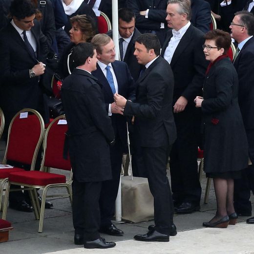 Presenti alla cerimonia sul sagrato vaticano un centinaio di delegazioni ufficiali, con 34 fra capi di Stato e di governo, compresi il presidente della Repubblica, Giorgio Napolitano, e il premier Matteo Renzi con le rispettive mogli, Clio e Agnese.