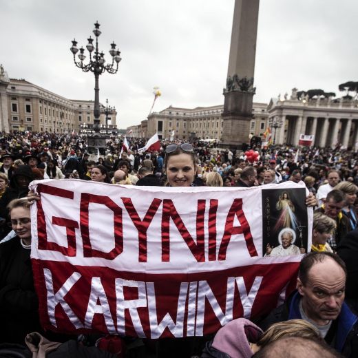 Campane a festa a Sotto il Monte (Bergamo), paese natale di Roncalli. Festa dei fedeli anche a Cracovia, la diocesi polacca di Wojtyla.