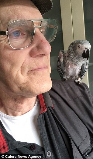 Jackson ha detto:”Evie sembra molto felice di essere a casa ed è di nuovo appollaiata sulla mia spalla chiacchierando, vicino al mio apparecchio acustico, così posso sentirla”.