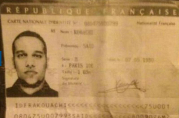 I killer sono stati riconosciuti grazie alla carta d’identità ritrovata dalla polizia nella Citroen C3 abbandonata durante la fuga vicino alla porte de Pantin, a Parigi. Sono diverse le immagini che circolano online e che mostrano foto dei loro documenti. Secondo un articolo del New York Times pubblicato nel febbraio 2005, Cherif Kouachi all’epoca 22enne era pronto per partire dalla Francia per combattere al fianco dei ribelli in Iraq.