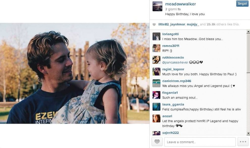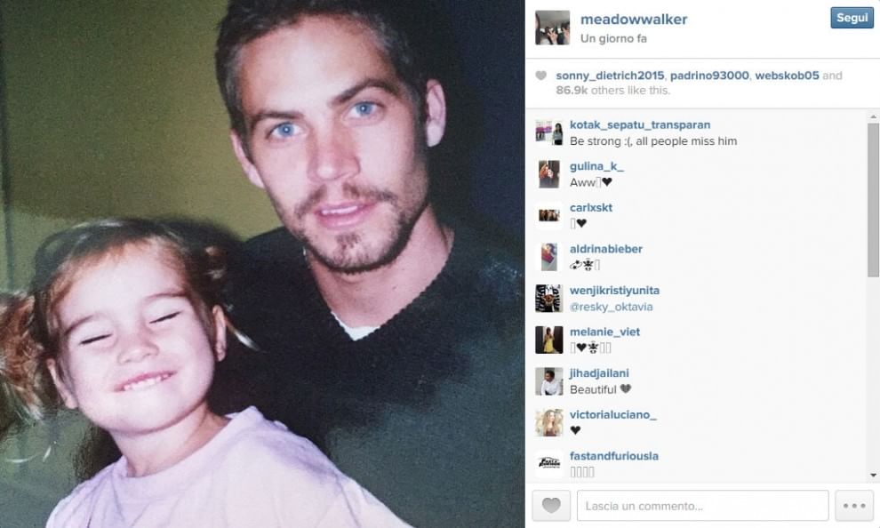 LOS ANGELES – Ad un anno e mezzo dalla morte di Paul Walker, la figlia lo ricorda così: con foto e post su Instagram. Le immagini sono state postate proprio nei giorni in cui l’ultimo film dell’attore americano, “Fast and Furious 7“, sta facendo il pieno di incassi.