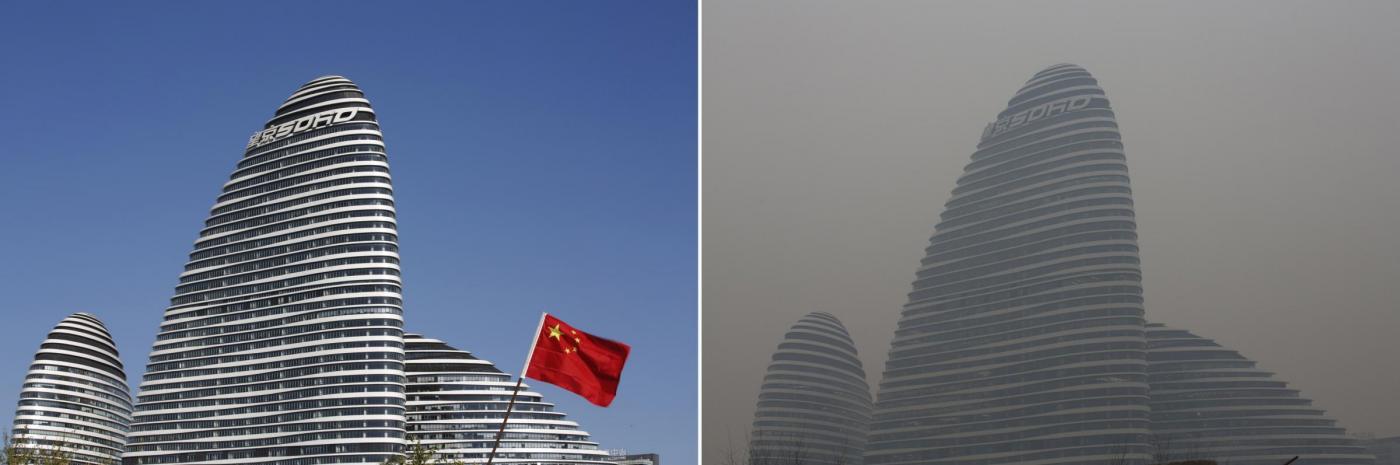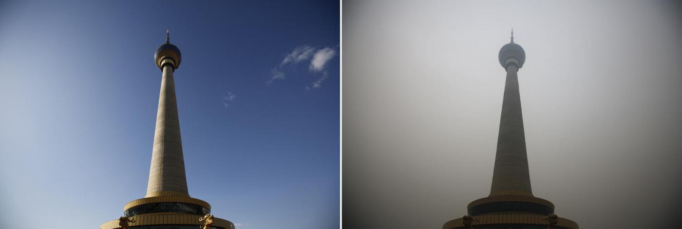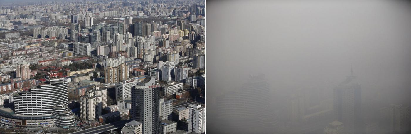 PECHINO – Pechino avvolta ancora una volta da una cappa di smog. Alcune foto pubblicate dalla Reuters in queste ore che BLitz Quotidiano vi ripropone in fondo all’articolo, mostrano i due volti della città: con e senza smog. La capitale è solo una delle sessantasei città su 74 che in Cina non hanno rispettato gli standard minimi sulla qualità dell’aria nel 2014. Il Governo cinese ha annunciato un programma per combattere lo smog, con stanziamenti per oltre 8,13 mld di dollari. Nei giorni scorsi, gli effetti e i danni dell’inquinamento sono stati raccontati nel documentario Under the Dome, firmato da Chai Jing, visto da oltre 100 milioni di utenti di Youku, lo ‘YouTube’ cinese. In un’ora e 45 minuti di immagini, il video, che descrive la vita degli abitanti delle città più inquinante della Cina, ha riaperto il dibattito sulle azioni anti-inquinamento promesse dal Governo.