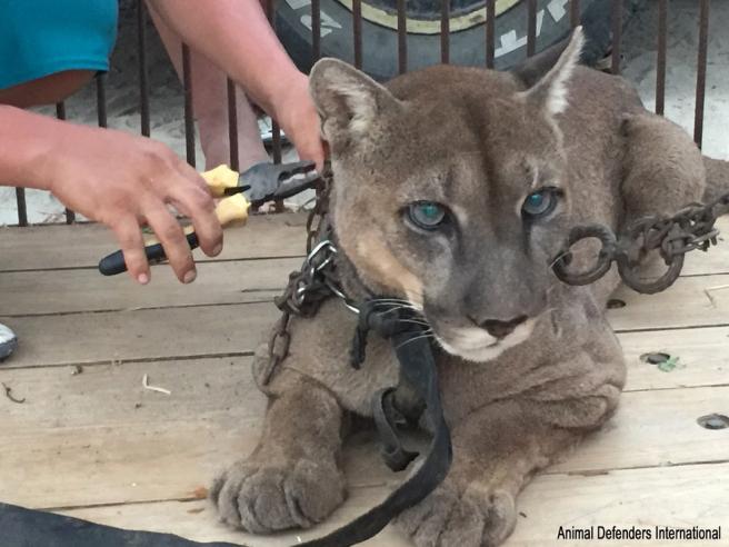Le giornate del puma e del condor erano scandite da maltrattamenti e piccole crudeltà. Il felino ad esempio, quando non si esibiva dormiva nel bagagliaio di una vettura, rannicchiato dietro i pali di una tenda. La Animal Defenders International, dopo aver liberato gli animali in gabbia li restituisce al loro habitat naturale.
