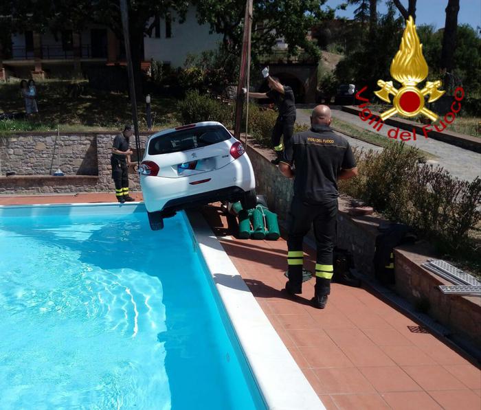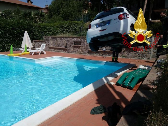 L’episodio è avvenuto intorno alle 10.30 del mattino in zona di Tavernelle a Perugia, quando l’auto si è sfrenata ed è piombata nella piscina privata di un’abitazione. I proprietari della casa hanno sentito il forte botto e hanno visto l’auto quasi in acqua, dando così l’allarme ai vigili del fuoco, che hanno poi provveduto a spostare la vettura e messo in sicurezza al zona.