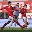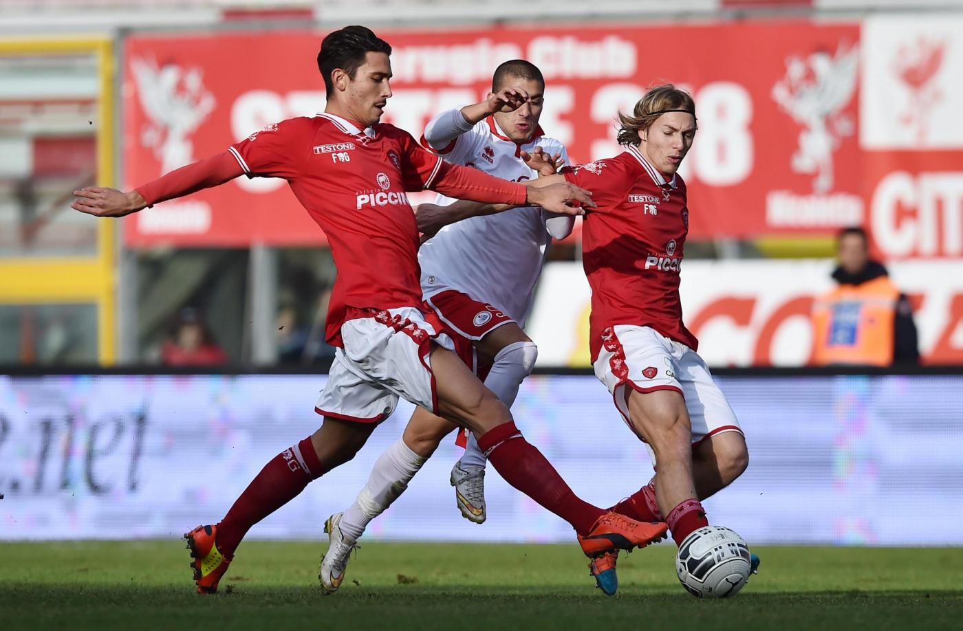 ROMA – Il Perugia pareggia in casa 1-1 contro il Bari nella seconda giornata di ritorno del campionato di serie B. I pugliesi sono passati in vantaggio al 12′ con De Luca, servito in area da Ebagua. Dopo un’occasione per parte, nel finale assalto del Perugia cui in pieno recupero è stato annullato un gol di Falcinelli apparentemente per un fuorigioco. Nella ripresa, al 14′, Bari in dieci per espulsione di Rada per fallo di mano. Al 24′ st pareggio del Perugia con Giacomazzi che supera Donnarumma. Le foto LaPresse. Risultati del campionato di calcio di serie B (classifica) dopo gli incontri della 23/a giornata (Modena-Lanciano domani alle 12.30).
