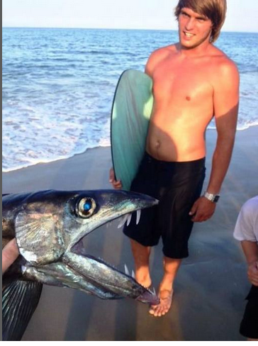 ROMA – Si chiama “pesce lancetta” per la sua forma allungata, un esemplare abissale, di oltre 2 metri con una bocca munita di denti acuminati. Vivono in mare aperto, soprattutto nelle profondità dell’Atlantico e del Pacifico.