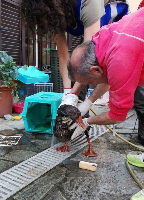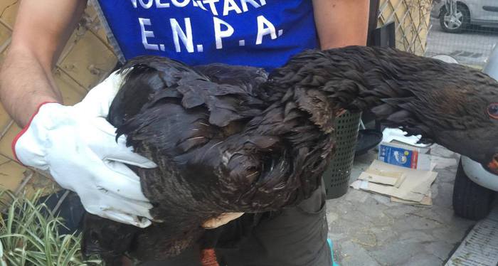 All’incontro, oltre all’ammiraglio Giovanni Pettorino, comandante della Capitaneria di Porto di Genova, c’erano i tecnici dell’Arpal (Agenzia di Protezione Ambientale per la Liguria) che hanno il compito di monitorate i danni ambientali provocati dal disastro e referenti principali del magistrato titolare dell’inchiesta, il sostituto procuratore Alberto Landolfi, avviata per fare luce sulle cause dello sversamento di greggio. Anatre, aironi, papere, germani e oche, sono decine gli esemplari soccorsi dall’Enpa di Genova. Una volta prelevati dall’area inquinata, i selvatici, intrisi di petrolio e con gravissimi sintomi di intossicazione – spiega l’Ente protezione animali – vengono portati presso la sede della Sezione genovese dove i volontari li trattano prima con oli vegetali leggeri, per pulire le piume dal petrolio, quindi con detergenti neutri per rimuovere gli agenti contaminanti. «Poi – spiega Massimo Pigoni, responsabile della Protezione Animali genovese e vicepresidente nazionale di Enpa – non resta altro che incrociare le dita, sperando che i livelli di intossicazione non siano letali». Questo è quanto accade nel migliore dei casi, perché sovente gli animali arrivano alla sede Enpa privi di vita. Le foto Ansa degli uccelli pieni di greggio. L’immagine del cormorano avvolto negli asciugamani è già diventata la foto simbolo di questa nuova tragedia ambientale (foto Ansa).