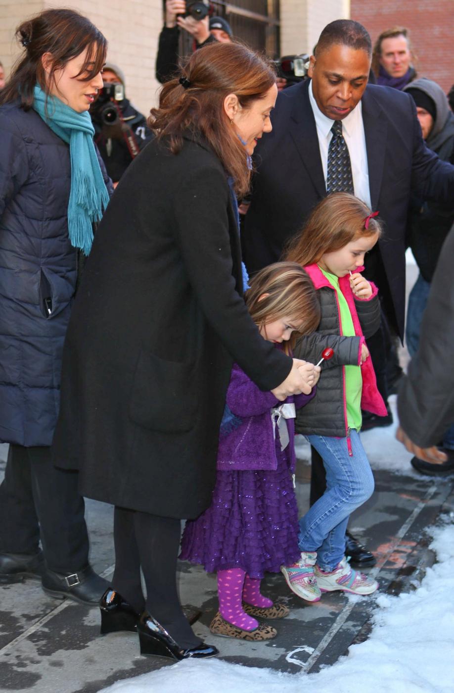Quanto alla famiglia, era rappresentata soprattutto dalla madre dello scomparso, Marilyn O’Connor, che si è trascinata vicino al feretro coprendosi il volto con ambedue le mani. Assente invece Mimi O’Donnell, da poco ex compagna di Hoffman e madre dei suoi tre figlioletti: la donna era stata vista qualche ora prima lasciare casa propria insieme ai bambini (vedi le immagini qui di seguito) e allontanarsi a bordo di un Suv di colore nero. La coppia si era separata di recente. Moltissimi per contro gli ammiratori e i curiosi assiepati intorno al sito della veglia funebre, e ancora più numerosi i giornalisti, i fotografi e gli operatori: un nutrito servizio d’ordine allestito dalla polizia ha però badato a tenere a distanza qualsiasi intruso.