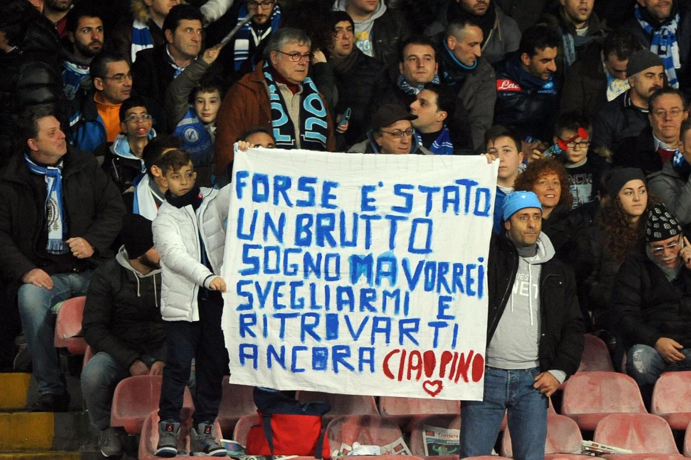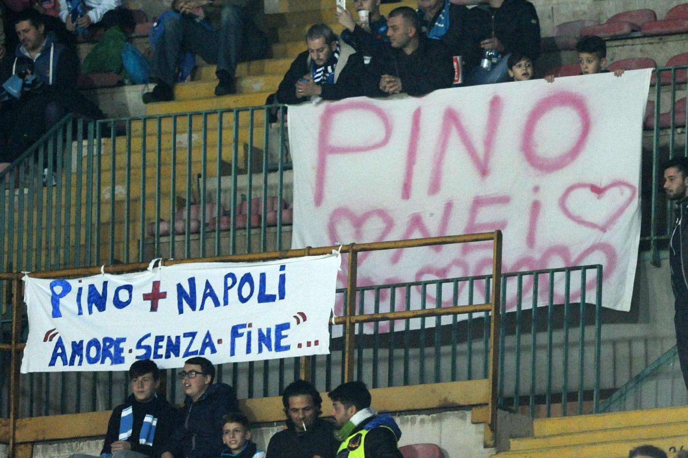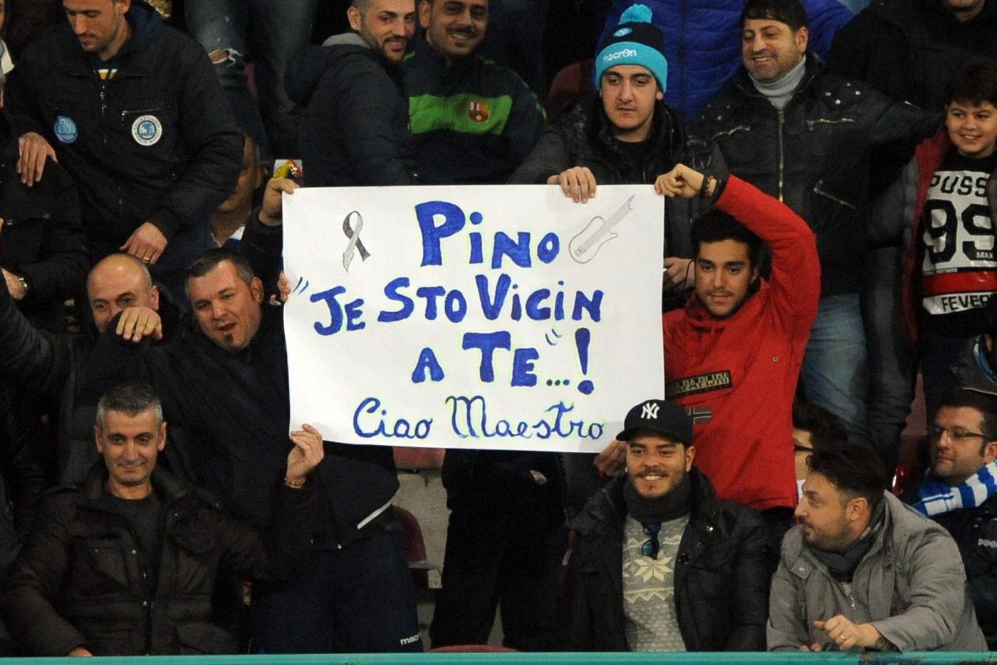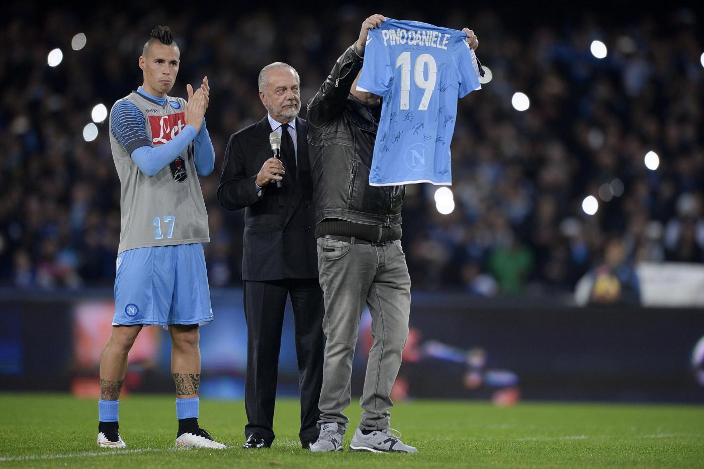 A ricordare il cantautore scomparso è stato il presidente del Napoli, Aurelio De Laurentiis, che ha parlato dal centro del campo per “ricordare e onorare – ha detto – un grande napoletano, Pino Daniele”. De Laurentiis ha ricordato anche il regista napoletano Francesco Rosi, morto ieri.