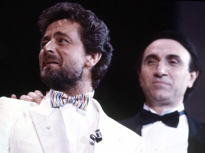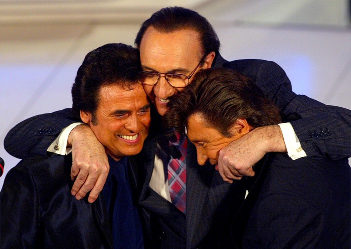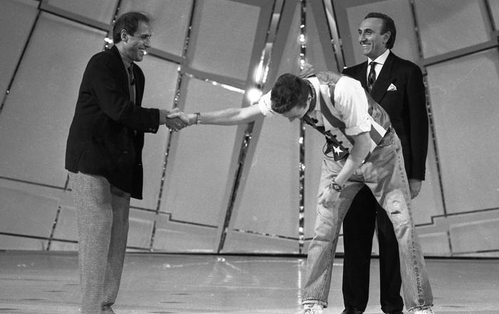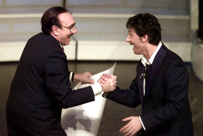 “Ha condotto cinque edizioni consecutive del Festival di Sanremo dal 1992 al 1996. Nel 1998 è tornato per la seconda volta a Mediaset dove ha realizzato “La canzone del secolo”, un programma sulla storia della musica italiana. Quando la sua immagine è sembrata in declino è ripartito da Rai3 con un programma intitolato “Giorno dopo giorno”. Nel 2000 ha condotto la trasmissione “Nel cuore del padre”, in onore di Al Bano Carrisi. Segue poi il grande successo di “Novecento – Giorno dopo giorno”, dove fatti e vicende del Novecento sono stati rivisitati in studio con testimoni e protagonisti d’eccezione. Da gennaio 2001 è stato ideatore e conduttore dello spettacolo di Rai1 “Passo doppio”. E’ stato scelto ancora per il Sanremo del 2002. Dopo il buon successo dell’anno precedente è stato ancora lui – per l’undicesima volta – il padrone di casa a Sanremo. Mentre il 2004 è il momento più difficile: dopo 18 anni di matrimonio si è separa dalla moglie Katia Ricciarelli. Ma non basta: in seguito a gravi incomprensioni con Flavio Cattaneo, al tempo dg Rai, arrivò la notizia del suo licenziamento. Questione di poco, però: l’anno seguente è tornato su Rai1 con Domenica In”.