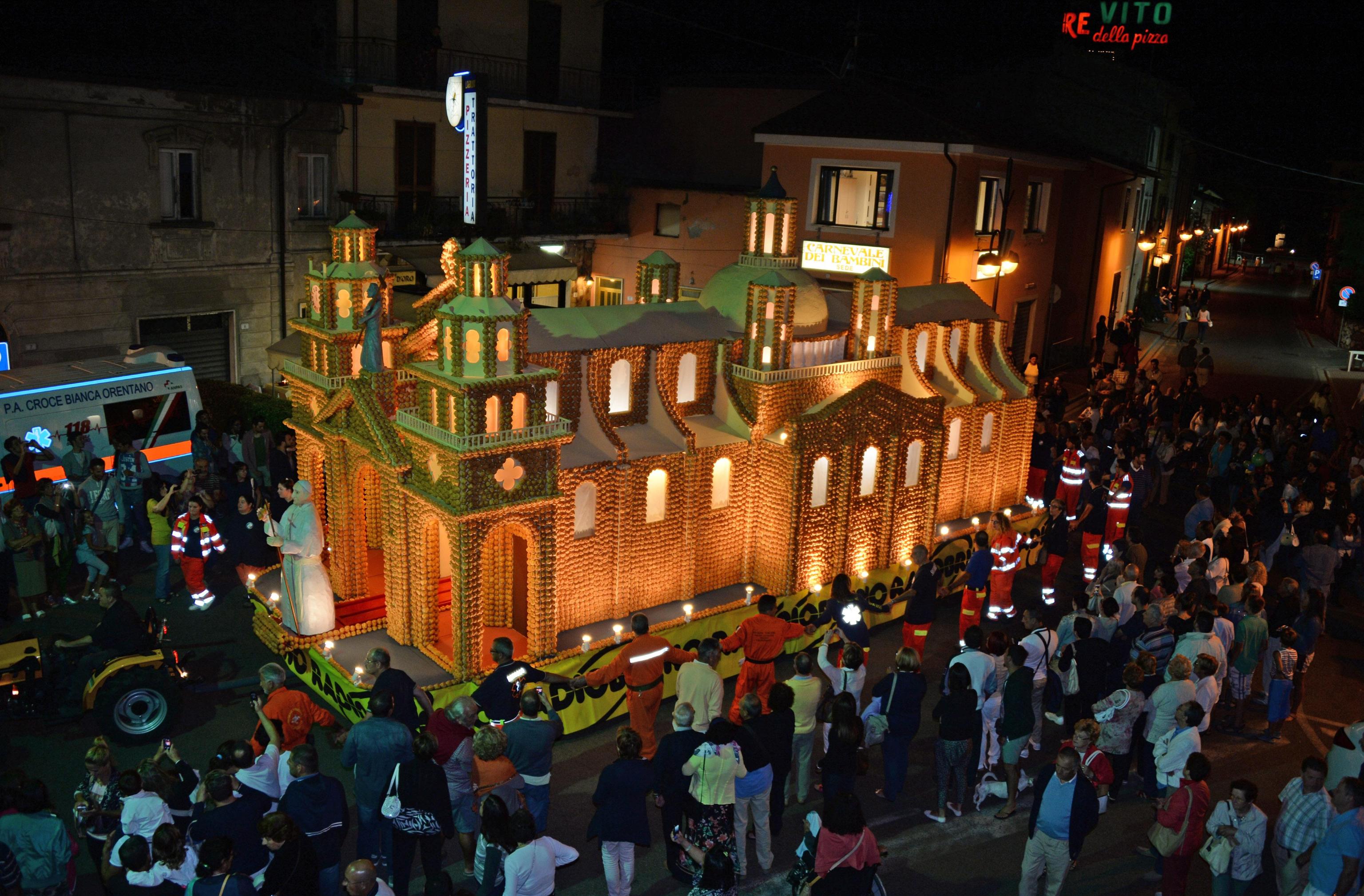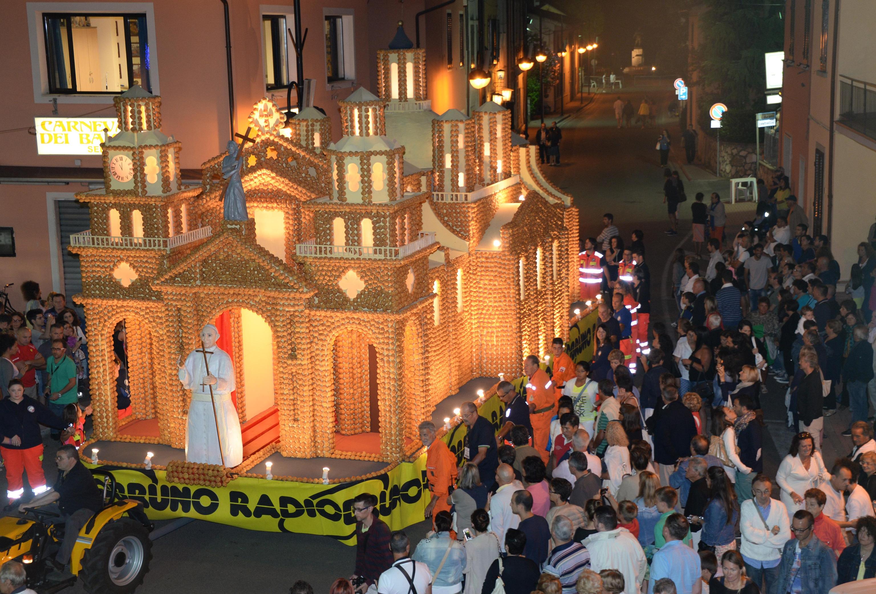 Il dolce durante la sfilata per le vie del paese è stato accompagnato dal sindaco Gabriele Toti, dall’arcivescovo di San Miniato, Fausto Tardelli, e dalle altre autorità locali mentre una baraonda di flash e foto degli spettatori hanno incorniciato il percorso.