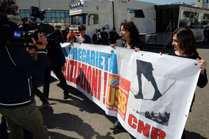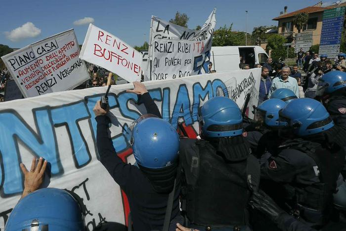 PISA – Momenti di tensione tra manifestanti e polizia a Pisa al termine di un corteo anti Renzi promosso da centri sociali, sindacati di base e collettivi universitari al quale ha aderito anche l’associazione vittime del salva banche. E Renzi nemmeno c’è. Scontri e cariche di alleggerimento sono avvenute quando il corteo ha raggiunto la recinzione dell’area della ricerca del Cnr di Pisa dove si celebrano i trent’anni della prima connessione a internet italiana alla presenza del ministro Stefania Giannini e con un collegamento video con il premier Matteo Renzi.