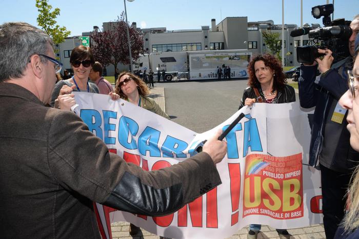 L’area dove si tiene la celebrazione è letteralmente blindata da centinaia di poliziotti e carabinieri in tenuta anti sommossa e le principali strade d’accesso sono chiuse al traffico. Durante il corteo sono stati scanditi slogan contro il governo e il Pd.