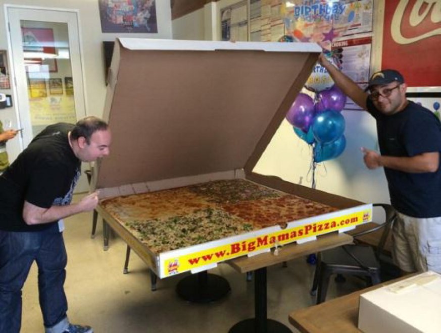 LOS ANGELES – Il ristorante Big Mama’s & Papa’s, secondo quanto assicurano i suoi gestori ha realizzato la “pizza più grande del mondo a domicilio”. Per la modica cifra di 220 dollari (circa 200 euro), la pizzeria californiana permette da circa un anno di ordinare enormi pizze anche a casa. Si tratta di una “bestia” da 140 centimetri per lato , inserita in un cartone che ospita porzioni destinate a più di 16 persone.