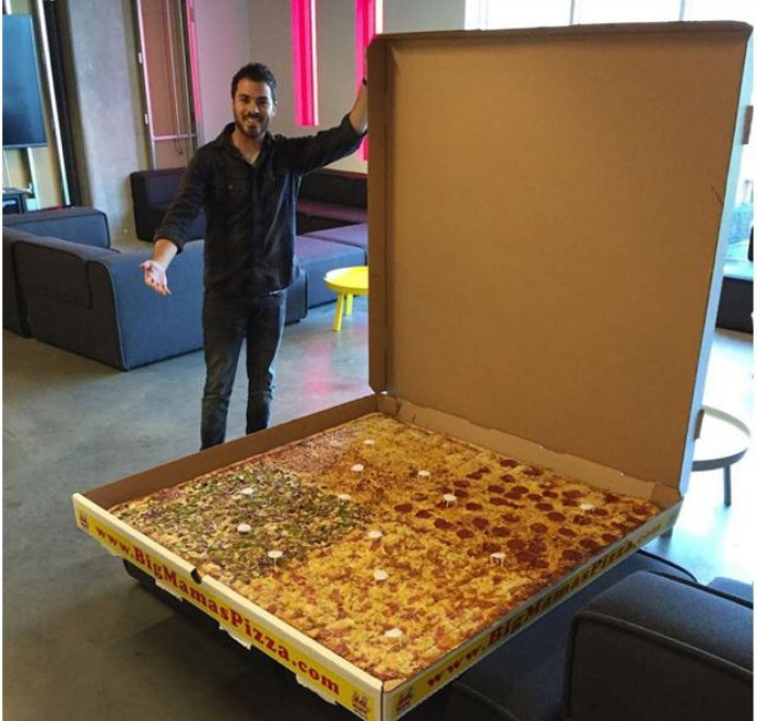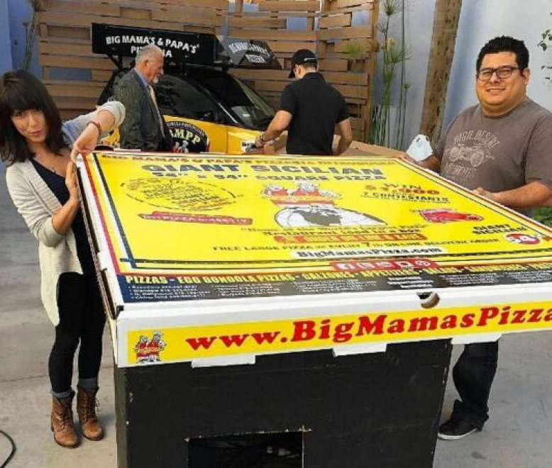 Diventata famosa quando nel 2014 fu mangiata agli Oscar anche da Brad Pitt e Angelina Jolie, la Big Mama si è rilanciata grazie a questa pizza extralarge. Per consegnarle serve una flotta di auto speciali munite di tetto porta cartoni. Ai clienti viene chiesto di ordinare la pizza almeno 24 ore prima. Solo chi l’ha provata potrà dire se è anche buona: il locale ha intanto postato le foto sul profilo Instagram del locale. Guinness dei Primati o no (al momento non è noto se il ristorante abbia chiesto di entrarci), di sicuro la pizza è davvero gigantesca. Come mostra uno degli scatti, all’interno del cartone c’entrano due persone.