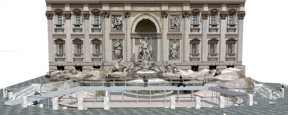 La Fontana sarà visibile anche con uno sguardo ravvicinato grazie al ponte panoramico sulla vasca raggiungibile direttamente dalla piazza. Ciò permetterà di entrare direttamente nel cantiere. I turisti, nel frattempo potranno continuare a lanciare la monetina grazie ad un allestimento scenografico posto al centro della recinzione.