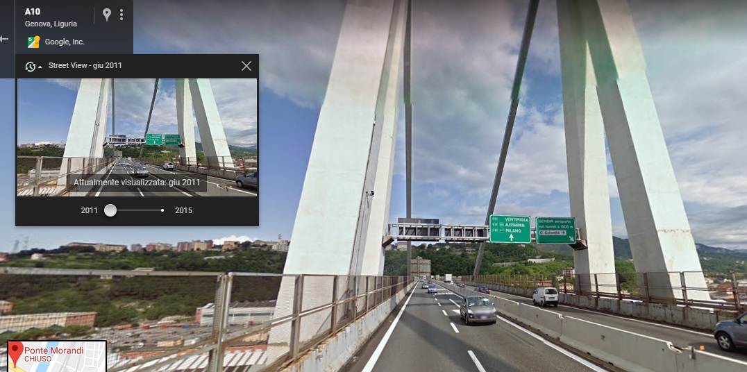 Crepa sul pilone di Ponte Morandi, le foto da Google Maps. Tra i video sul Ponte Morandi di Genova finiti agli atti della procura, c’è anche quello girato sette minuti prima del crollo da un automobilista con una telecamera GoPro. Nel breve filmato si vede una crepa nel pilone 9, quello crollato, alla destra dell’autista del mezzo.
