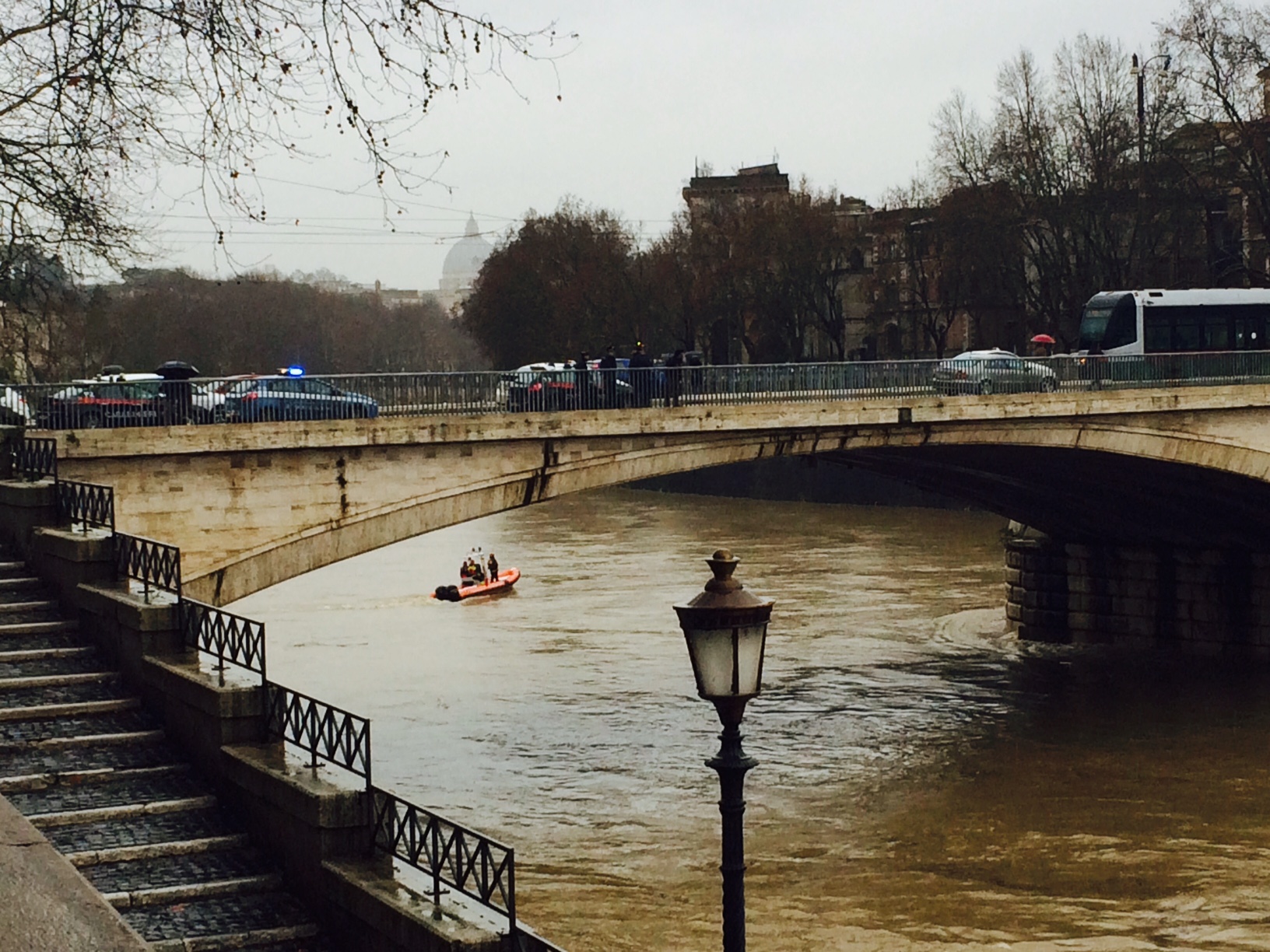 Alla ricerca dell’uomo hannoย lavorato le squadre di sommozzatori dei vigili del Fuoco, i soccorritori subacquei, la Croce Rossa, polizia e carabinieri. Il Tevere alle 13 era aย un livello di 8,20 metri, misurati all’idrometro di Ripetta. Alle 17.30 era salito a 10 metri. Allerta lungo tutto il fiume, esondazioni segnalate all’altezza di Orte. Guarda le foto scattate fra Ponte Garibaldi e Ponte Palatino: