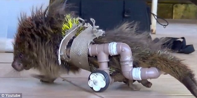 SAO PAULO, BRASILE – Un porcospino paraplegico si aggira per lo zoo Piracicaba di Sao Paulo (Brasile): doveva essere soppresso, ma è stato salvato da una sedia a rotelle inventata dall’estro di un dipendente dello zoo. Costa 5 dollari ed è fatta di tubi idraulici, adattati con due rotelle e delle stringhe, per farne una vera e propria carrozzina.