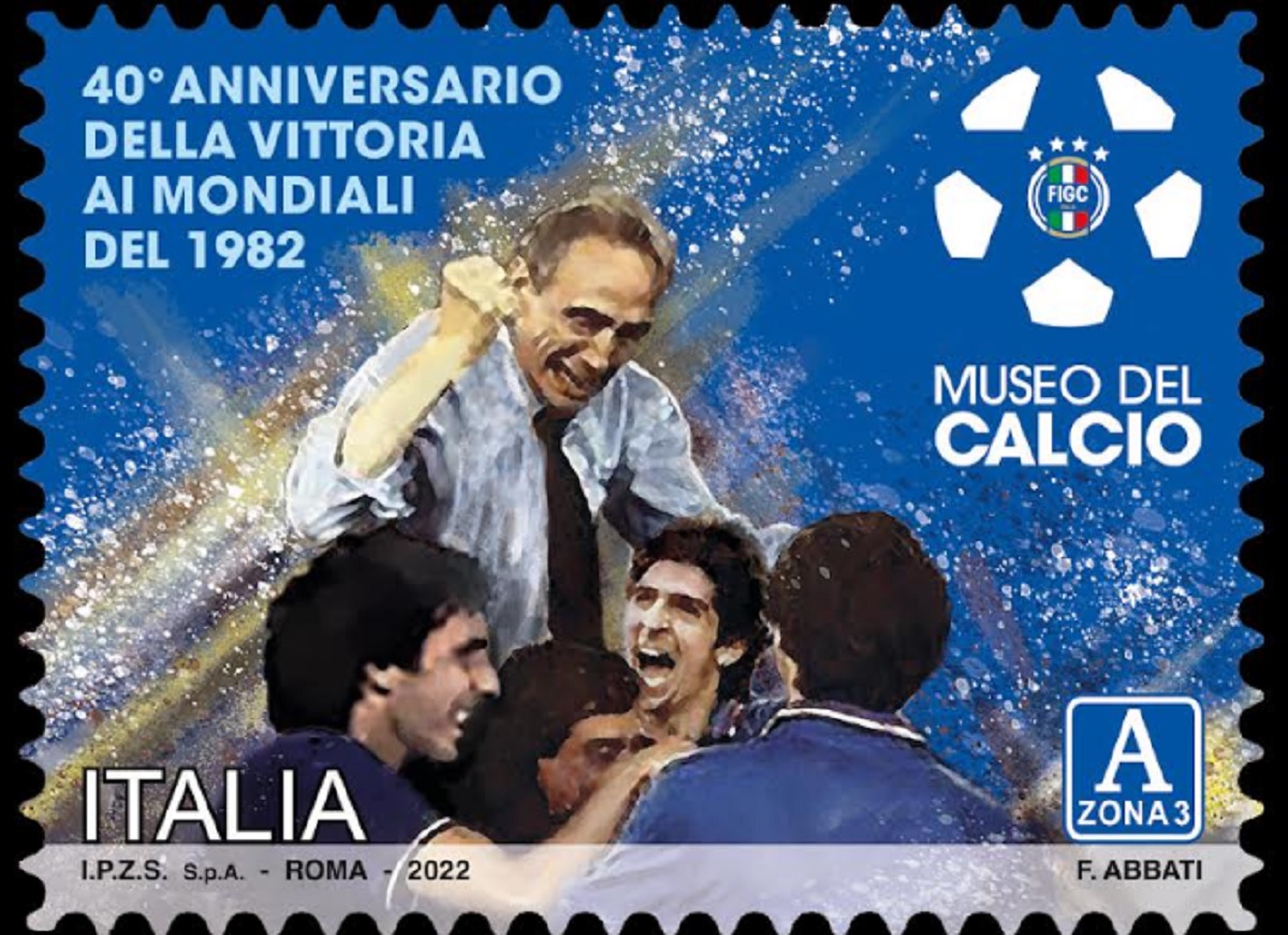 Poste Italiane comunica che oggi 5 dicembre 2022 viene emesso dal Ministero delle Imprese e del Made in Italy un francobollo ordinario appartenente alla serie tematica “lo Sport” dedicato alla vittoria della Nazionale italiana nel Campionato mondiale di calcio del 1982, nel 40° anniversario, relativo al valore della tariffa A zona 3 pari a 5,50€ Tiratura: quattrocentomilacinque esemplari. Foglio da quarantacinque esemplari.