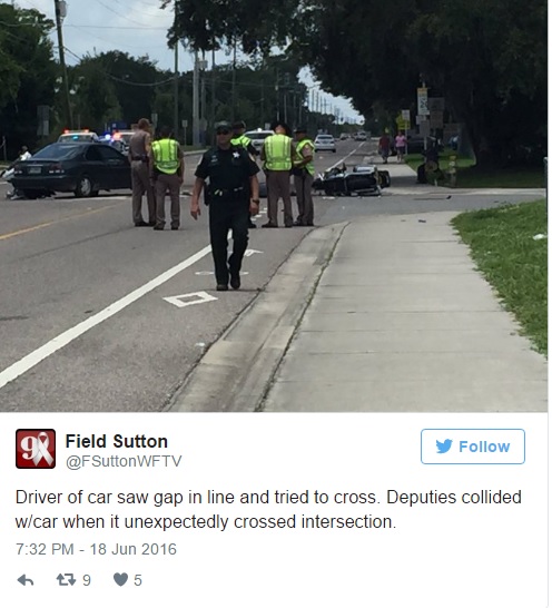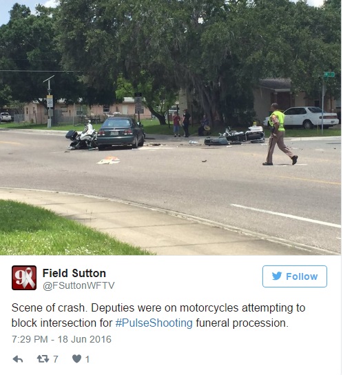 ORLANDO – Una macchina si è schiantata nel bel mezzo di un corteo funebre di una delle vittime del massacro di Orlando, mandando due poliziotti all’ospedale. Il corteo funebre per Jean Carlos Mendez Perez stava viaggiando da una chiesa alla tomba di un cimitero di Kissimmee a sud di Orlando, quando una donna alla guida di un’auto ha cercato di aggirare il corteo funebre. Due agenti della contea di Osceola che si trovavano in moto per proteggere il corteo, sono stati portati in ospedale dopo l’incidente.