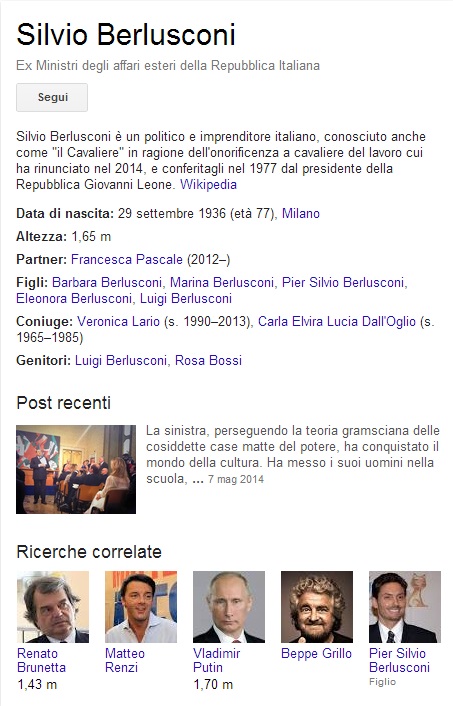 La risposta è stata rimossa durante il pomeriggio dopo essere diventata virale in tutto il web, ma gli ignoti non si sono arresi, e hanno quindi deciso di riprovarci con “quanto è alto uno psiconano?“. La risposta è sempre l’altezza di Silvio Berlusconi.