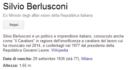 ROMA – Il giochino con cui alcuni ignoti lunedì 12 maggio avevano suggerito a Google di rispondere alla domanda “quanto è alto un nano?“ con l’altezza di Silvio Berlusconi, nella giornata di ieri, 12 maggio, aveva fatto ridere il web.