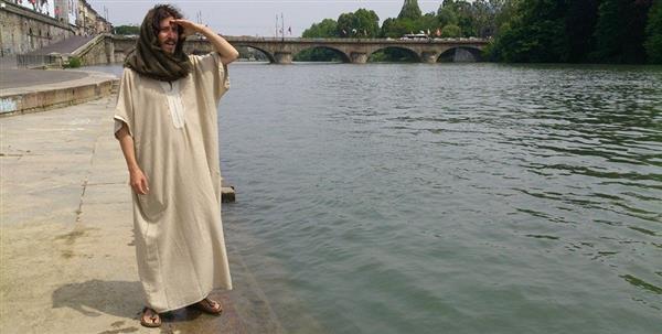 La messinscena, nella città dell’esposizione della Sindone è stata gradita da molti turisti, e un po’ meno dalle forze dell’ordine che nei giorni scorsi hanno fermato almeno 5 volte il giovane.