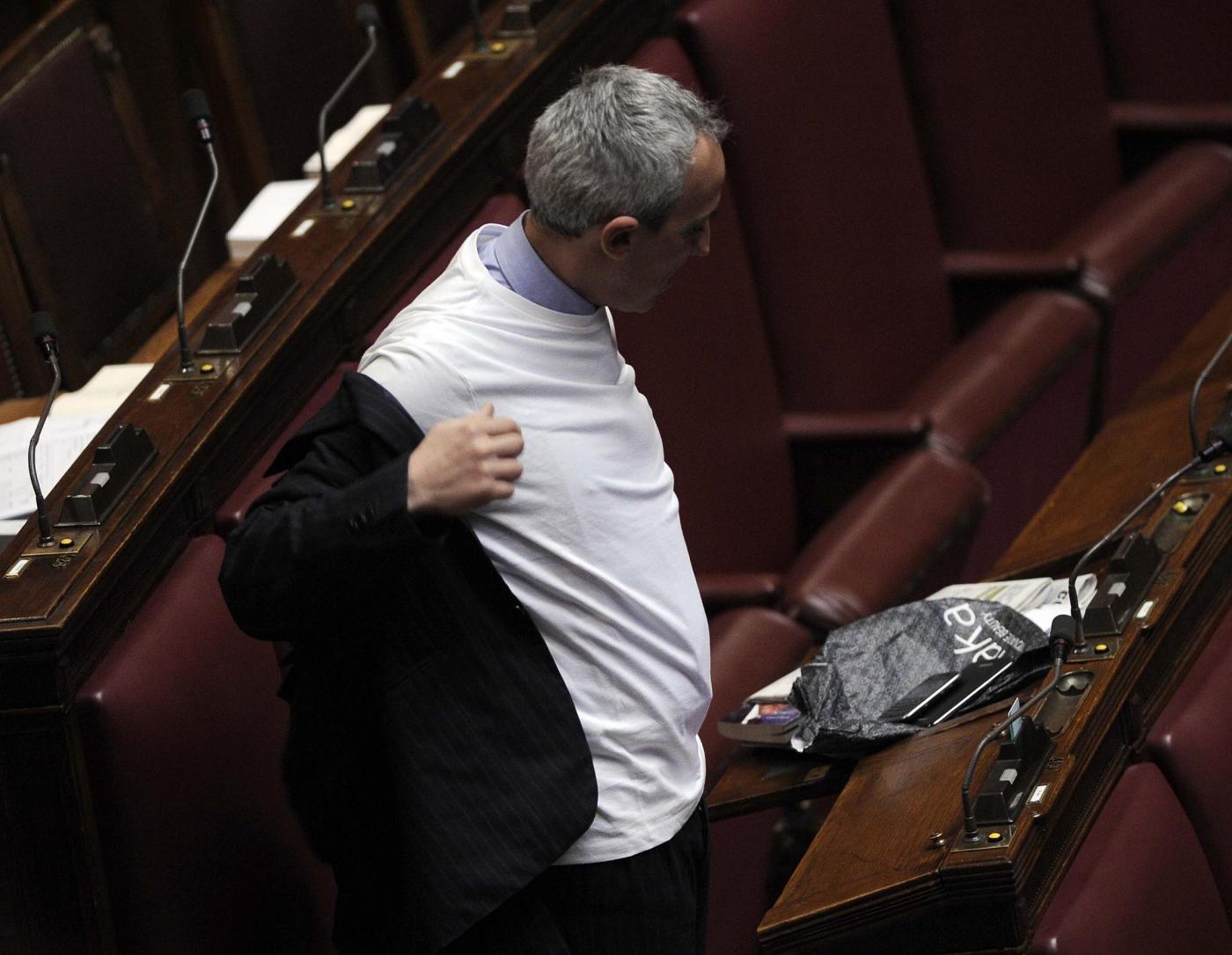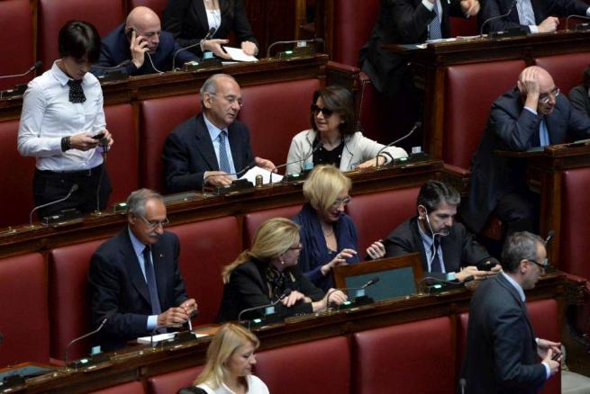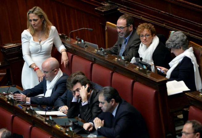 La battaglia bipartisan delle donne a Montecitorio, però, va avanti. Anche diversi parlamentari uomini hanno soldarizzato con le colleghe indossando sciarpe e magliette bianche (foto Ansa e LaPresse)