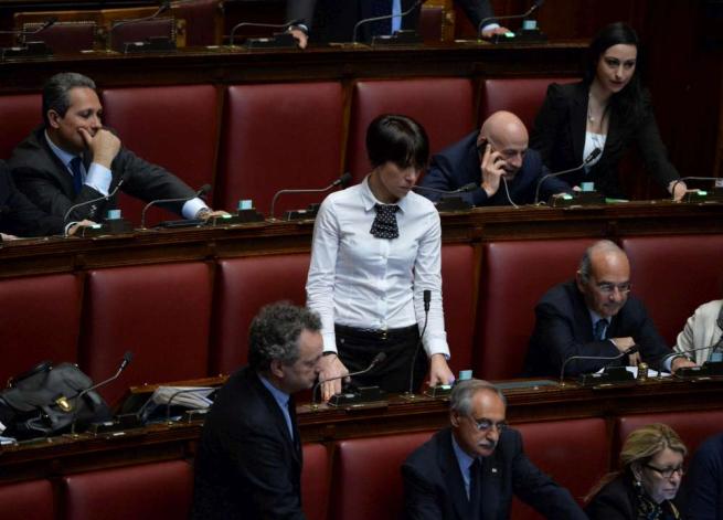 L’obiettivo è convincere l’Aula a introdurre, nella nuova legge elettorale in approvazione, la parità di genere. Vestite in questo modo ci sono tra le altre, Alessandra Moretti (Pd), Nunzia De Girolamo (Ncd), Michela Vittoria Brambilla e Gabriella Giammanco (Fi).