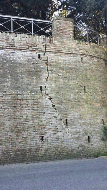 L’allarme l’ha lanciato il sindaco Francesco Fiordomo: la scossa di magnitudo 6.5 ha aperto uno squarcio nella collina, e ha messo in evidenza “come lo scivolamento a valle del colle, provocato da una grave debolezza idrogeologica, ha già provocato danni forse irreversibili”.