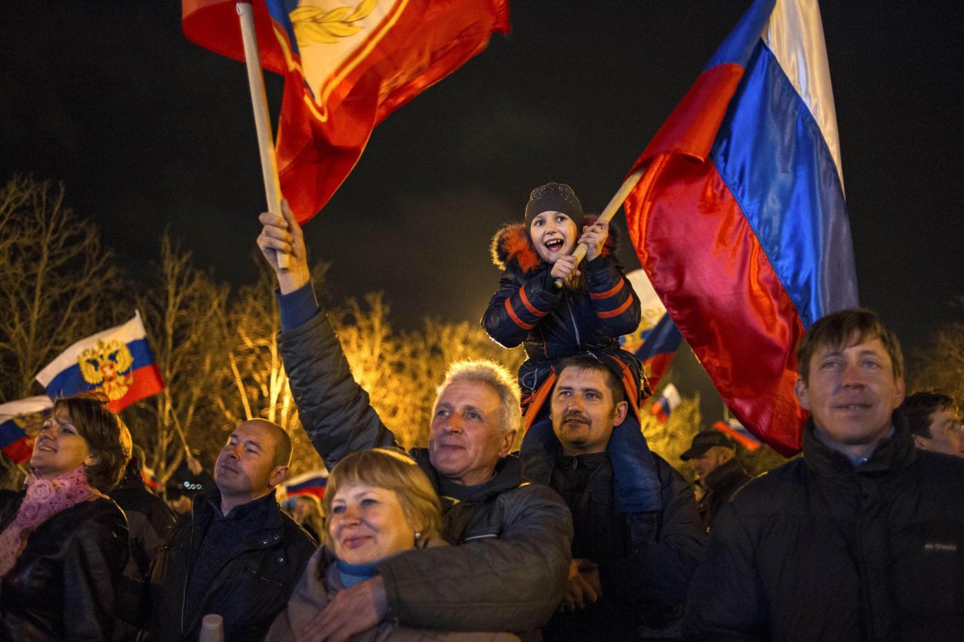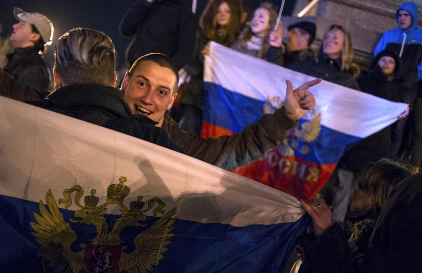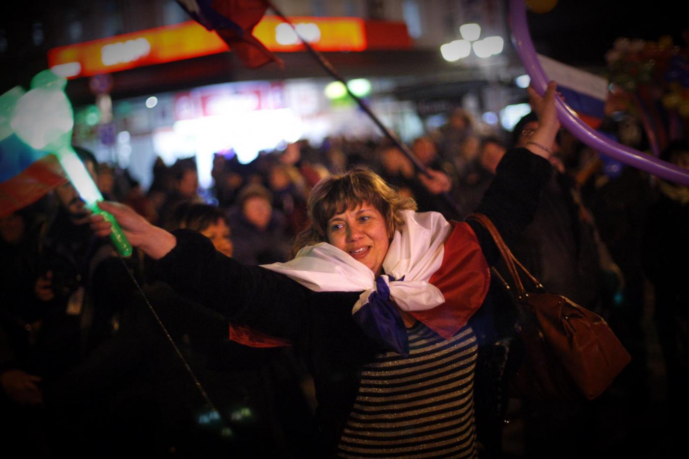 Migliaia di persone in piazza Nahimov a Sebastopoli stanno celebrando la vittoria dei sì all’annessione della Crimea nel referendum (vedi foto a seguire). Quando sono stati annunciati i dati ufficiosi, secondo i quali nella città a statuto speciale è stata sfondata la soglia dell’84%, la folla ha esultato.