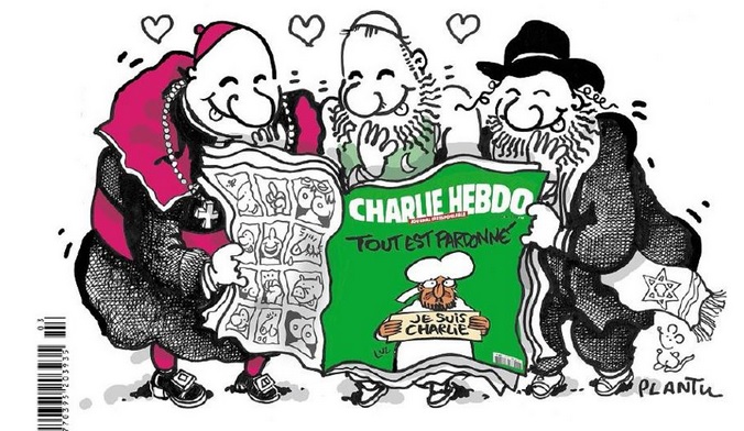 PARIGI – Mentre il nuovo numero di Charlie Hebdo, alle 7 di questa mattina (mercoledì 14 gennaio) era già esaurito nelle maggiori edicole delle stazioni di Parigi (alla gare Saint-Lazare, alla gare de Lyon e alla gare du Nord) Le Monde, uno dei più noti quotidiani francesi, martedì 13 gennaio ha dedicato la prima pagina al nuovo numero della rivista satirica rimasta vittima del feroce attentato della settimana scorsa. In una vignetta firmata da Plantu si vedono tre religiosi (uno cristiano, un musulmano e un ebreo) che leggono il primo numero del settimanale satirico dopo la strage in redazione.