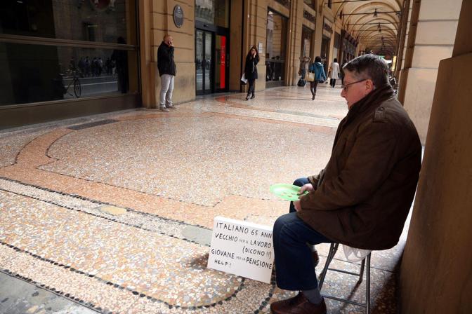 BOLOGNA – Chiede le elemosina con lo sguardo abbassato e un piattino teso. Un cartello spiega la sua situazione di povertà , cosa lo spinge a chiedere gli spiccioli altrui per vivere. La foto di Renato ha fatto il giro del web. Una ragazza ha fotografato questo signore distinto e curato, ha messo la foto su Facebook, e tanti l’hanno condivisa, passandosela di bacheca in bacheca. Perché Renato non è uno dei tanti, è quello che si definisce “uno di noi”. E’ italiano, 65 anni, ha sempre lavorato, di buona cultura.