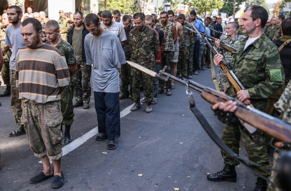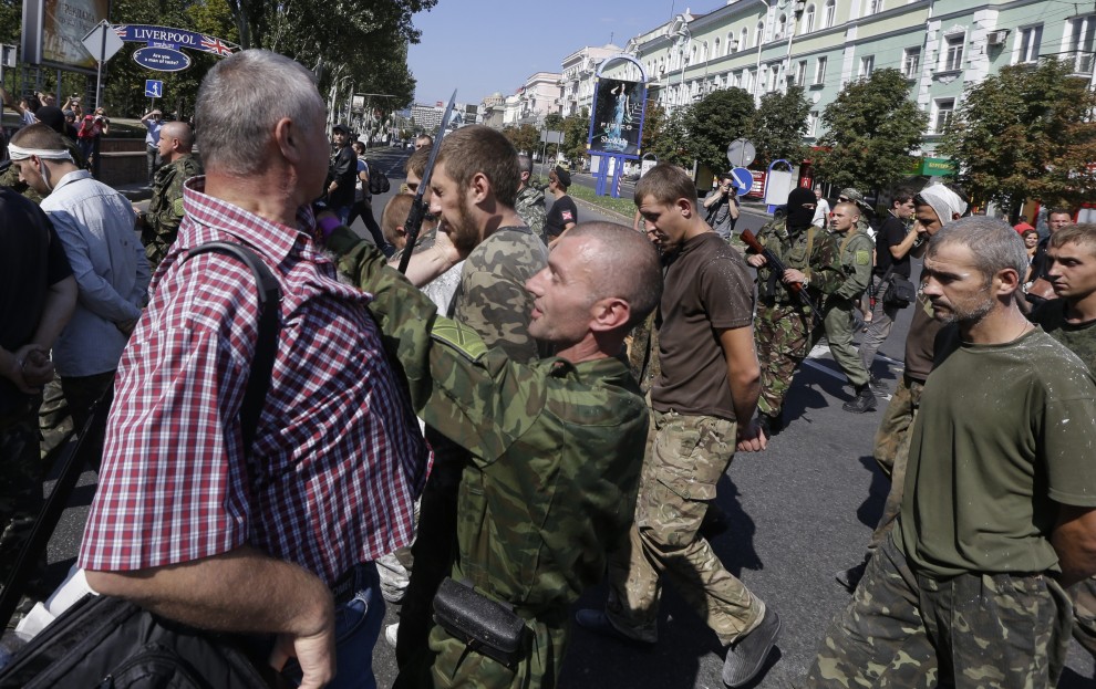 MOSCA, – Come la ‘parata dei vinti’ organizzata da Stalin il 17 luglio 1944 nel centro di Mosca, dove sfilarono 50 mila prigionieri di guerra tedeschi davanti ad una folla inferocita. I ribelli filorussi dell’est ucraino hanno riservato oggi 24 agosto la stessa umiliazione ad alcune decine di soldati ucraini catturati, costretti a marciare a testa bassa e con le mani legate dietro la schiena in piazza Lenin a Donetsk. Una aperta violazione della convenzione di Ginevra sui prigionieri di guerra. “Fascisti, fascisti”,”Pederasti”, “uccidete bambini”, grida la gente, scagliando rifiuti e bottigliette d’acqua.