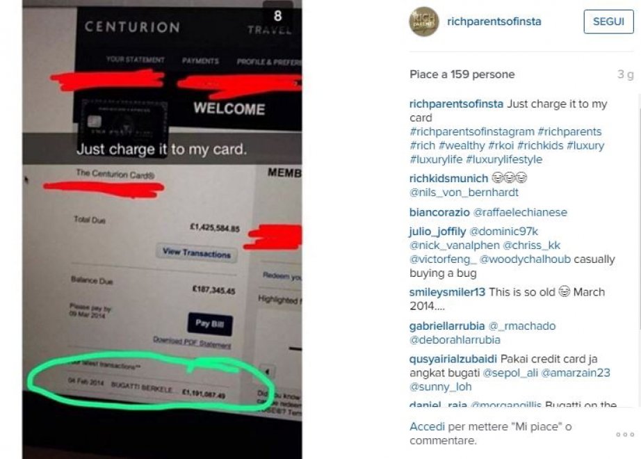 ROMA – Dopo i figli arrivano i padri. Con “Rich Kids of Instagram” infatti, a raccontare come spendono i soldi erano i “figli di papà”. Ora invece, con “Rich parents of Instagram” a diventare “figli di papà” sono i papà stessi.