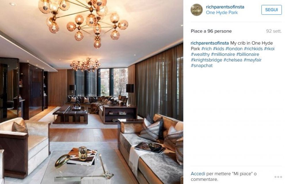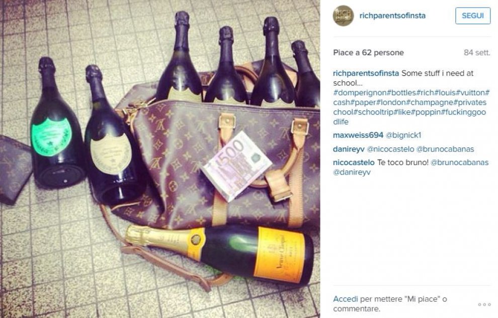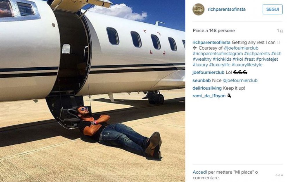 Il profilo è stato lanciato in questo mese su Instagram ad imitazione di quello dei “kids” ed è già ricco di foto. Mentre ‘Rich Kids of instagram” raccoglie il ridicolo lusso sfrenato dei ragazzi che a Londra o in Turchia per citare solo i due “sotto profili” più recenti, passano il tempo tra le belle donne, i soldi, lo champagne, le feste in piscina e le Ferrari, con “Rich parents of instagram” si vede come spendono i soldi i padri ultra milionari.