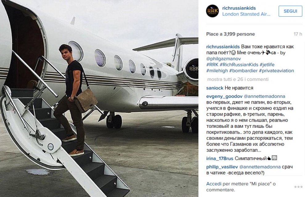 MOSCA – Un account anonimo su Instagram raccoglie le foto dei giovani figli degli oligarchi che sfoggiano tutta la loro ricchezza. Il profilo apparso su Instagram, il noto social di condivisione delle foto, è “Richrussiankids”. Cosa si vede andando in questa pagina? Macchine lussuose, aerei privati e location sfarzose di villeggiatura e non: gli eredi degli uomini più ricchi della Russia di Putin non fanno certo mistero della loro fortuna e si fanno ritrarre in posti esotici e in auto e macchine da sogno.