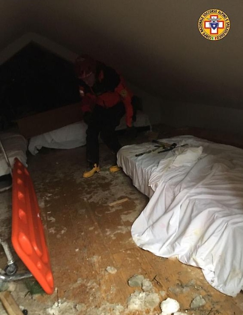 PESCARA – Un biliardo, bottiglie d’acqua e bicchieri di plastica, del cioccolato, qualche lettino. È quello che hanno trovato i soccorritori del Soccorso Alpino nelle stanze dell’Hotel Rigopiano dove i sopravvissuti hanno trovato rifugio per 42 ore prima di essere soccorsi ed estratti dalla trappola di neve dopo la valanga che ha sommerso completamente la struttura.
