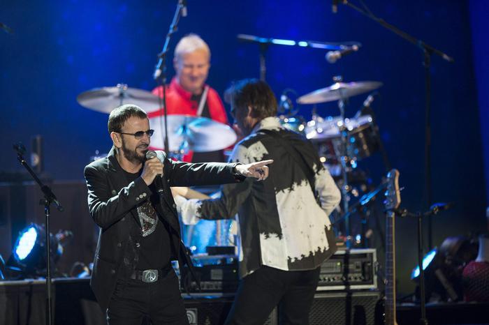 Solo acuni mesi fa Ringo ha pubblicato ‘Postcard from paradise’, un’autobiografia che ripercorre la sua carriera da solista iniziata nel 1970 con i brani più importanti della sua vita. Da ragazzino poverissimo, Richard mostra anche una salute cagionevole, tanto da finire in sanatorio ed abbandonare per questo la scuola. La svolta nella vita di Ringo avviene nel 1962, quando dopo esperienze con gruppi minori di Liverpool (nel 1959 aveva preso il suo nome d’arte, a causa dei molti anelli – ‘ring’ – che portava) subentra permanentemente a Pete Best come batterista nei Beatles, che si erano formati due anni prima. Con i Fab Four sviluppo’ il suo stile batteristico non sofisticatissimo ma nuovo e martellante, perfetto per la nuova musica che il quartetto andava inventando, che avrebbe cambiato la cultura popolare mondiale. E si cimentò anche in memorabili parti da cantante, come in With a little help from my friends, Yellow submarine, Act naturally, componendo anche un hit della band, Don’t pass me by.