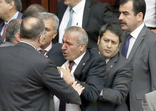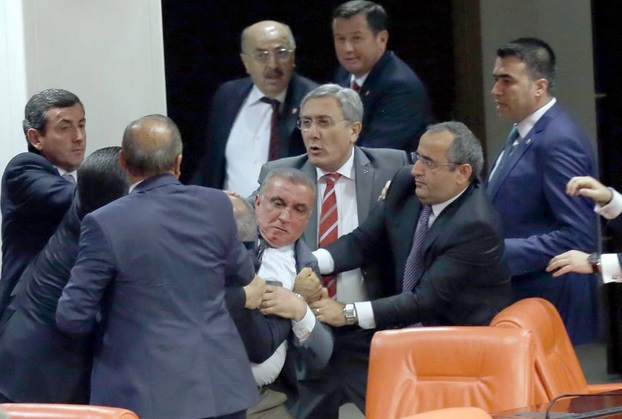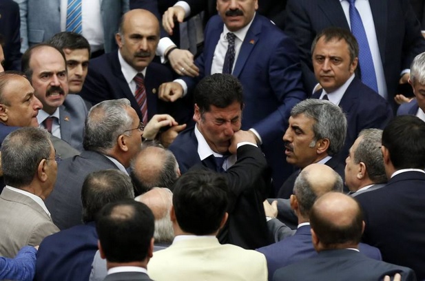 ROMA – Altro che Montecitorio: lunedì una violenta rissa al Parlamento turco ha causato almeno tre feriti. La rissa, scoppiata tra i deputati del partito del premier Recep Tayyip Erdogan e quelli dell’opposizione, è nata durante un dibattito sulla possibilità che il Parlamento apra un’inchiesta sulla questione dei militanti islamici che dalla Turchia vanno a combattere in Iraq e Siria.