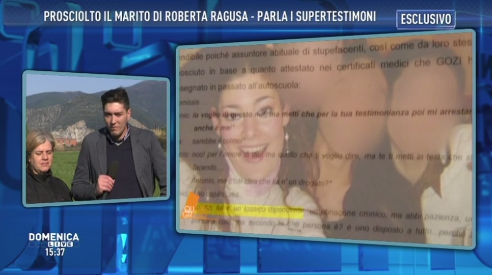 ROMA – Barbara D’Urso, durante l’ultima puntata di Domenica Live, ha letto alcune intercettazioni tra il marito di Roberta Ragusa, Antonio Logli e l’amante, Sara Calzolaio, nelle quali la donna definisce Gozi “un tossico dipendente, un ubriacone cronico. Ha bisogno di soldi per drogarsi”. Roberta Ragusa è la donna scomparsa nella notte tra il 13 e il 14 febbraio 2012. Antonio Logli, accusato e indagato per la scomparsa, in questi giorni è stato prosciolto dalle accuse di omicidio e distruzione del cadavere. Loris Gozi è un super testimone che giura di aver visto Logli in strada nella notte della scomparsa di Roberta Ragusa.